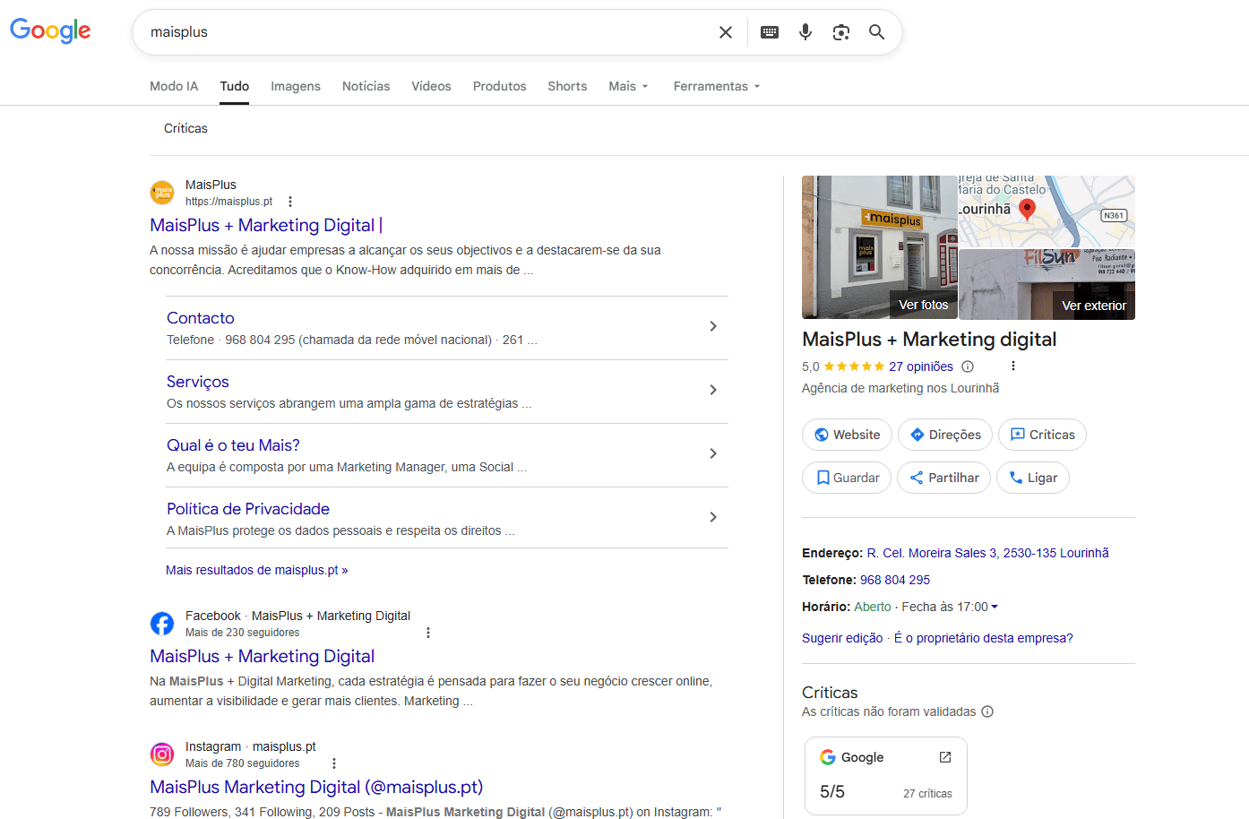 Na MaisPlus tratamos da criação, optimização e gestão contínua do Google Business Profile. Desde a configuração inicial até à manutenção reguilar, garantimos que o seu perfil trabalha activamente pela visibilidade do seu negócio.